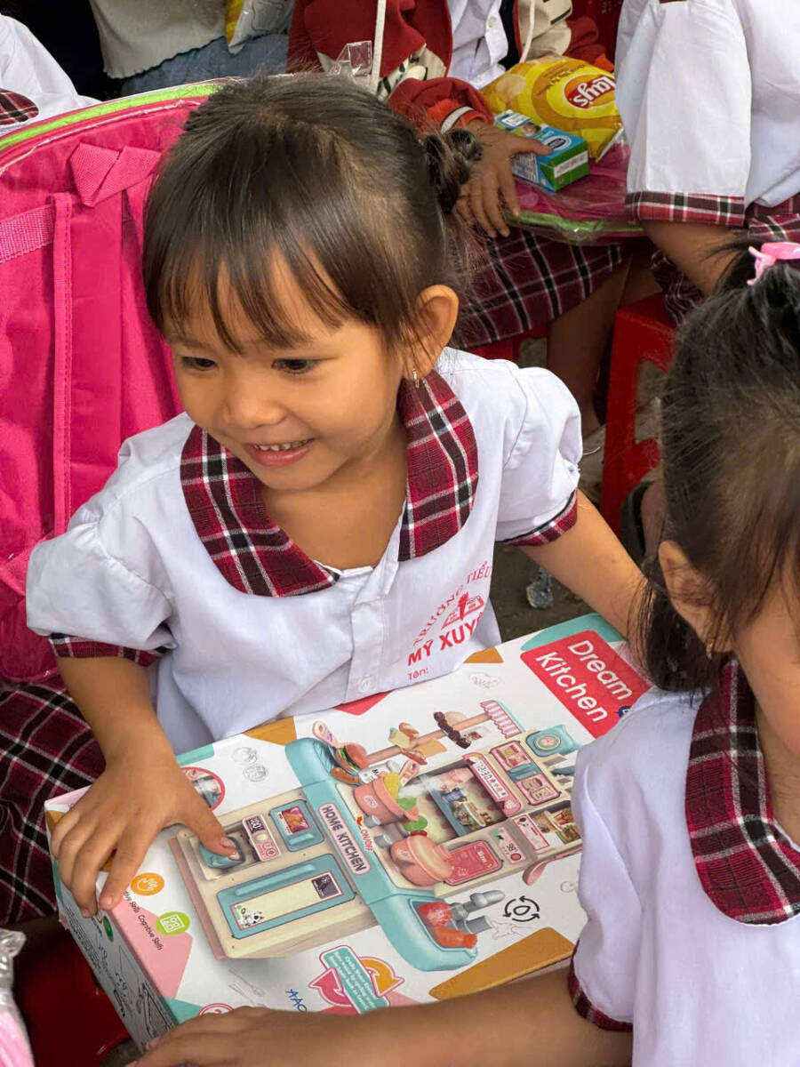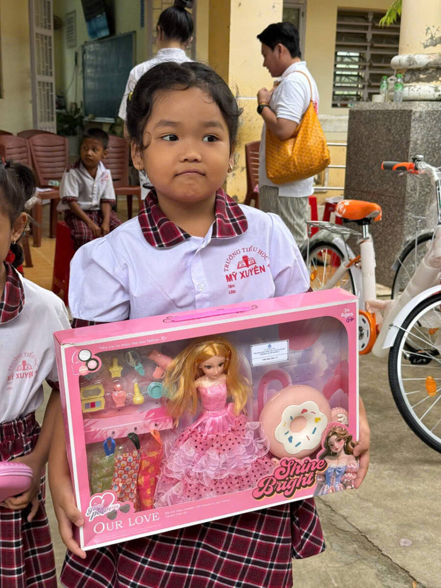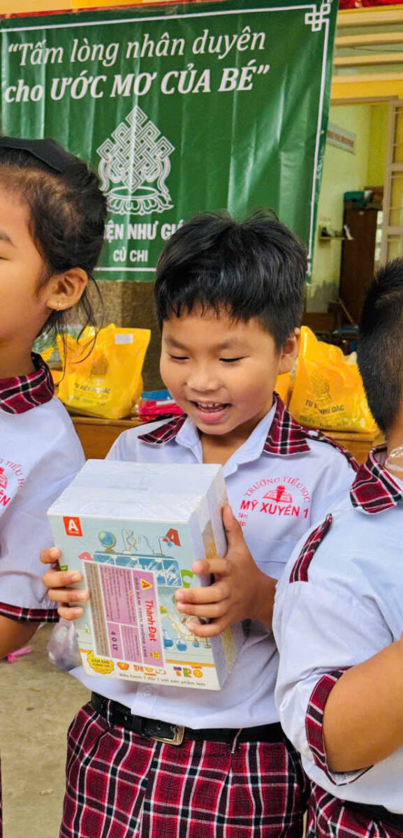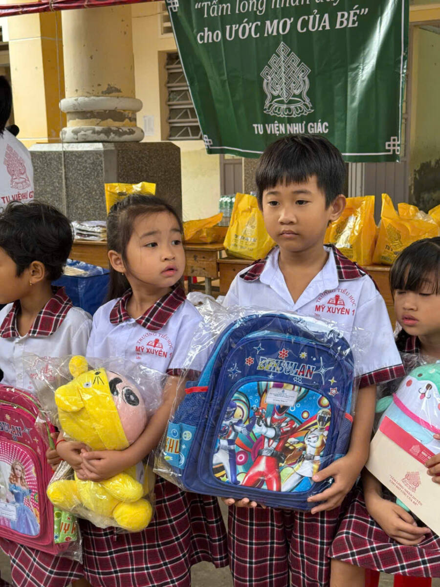 Trong chuyến hoằng nguyện lần này, hơn 600 phần quà đã được trao gửi đến học sinh Trường Tiểu học Mỹ Xuyên 1 và Mỹ Xuyên 2, gồm xe đạp, sách giáo khoa, tập vở, dụng cụ học tập, đồ chơi, nhu yếu phẩm và các gói bảo hiểm y tế dành cho những em có hoàn cảnh đặc biệt khó khăn. Những món quà tuy bình dị nhưng ấm áp nghĩa tình, góp phần nâng đỡ các em trên con đường học tập, giúp các em được chăm sóc tốt hơn về sức khỏe lẫn đời sống tinh thần, tiếp thêm niềm tin và nghị lực cho tương lai.