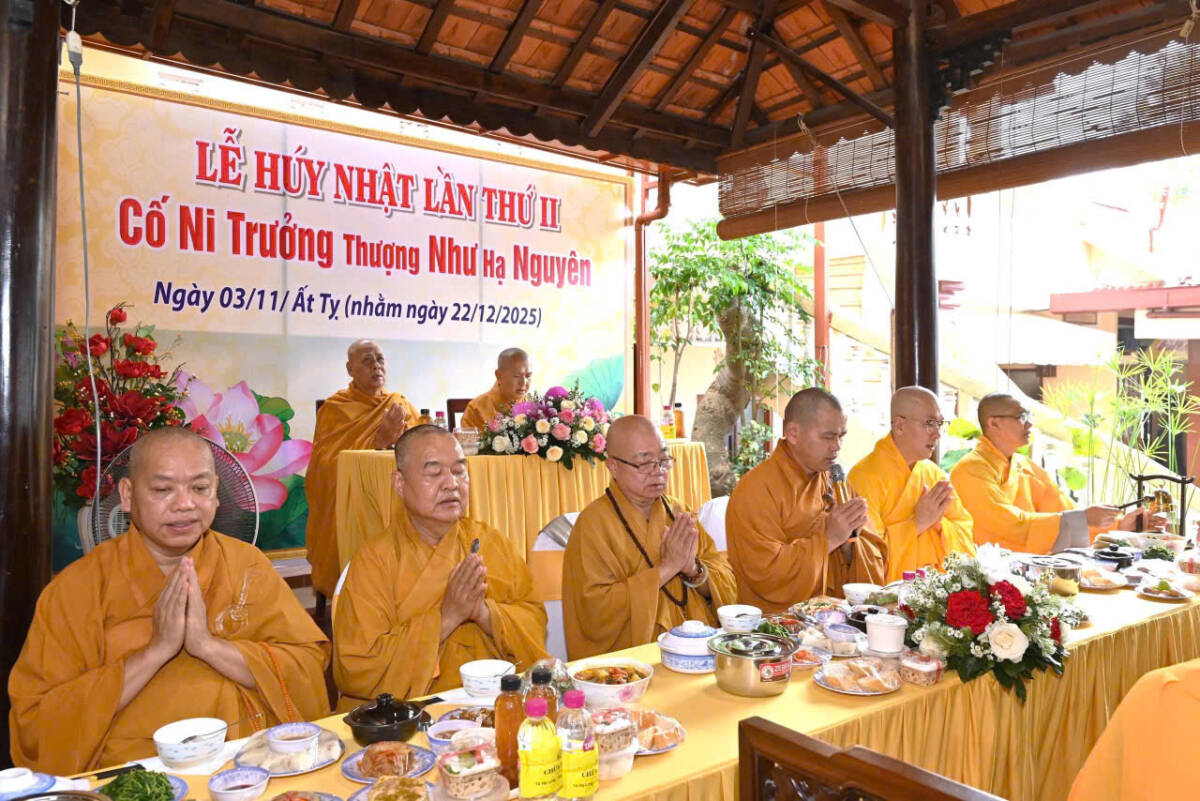 Dịp này, môn đồ đệ tử cũng đã thiết lễ trai Tăng, cúng dường lên chư tôn giáo phẩm để viên tròn hiếu sự. Tại trai đường, Sư cô Thích nữ Huệ Trí, trụ trì chùa Hải Vân dâng lời tưởng niệm, bày tỏ niềm kính tiếc của hàng đệ tử khi vắng bóng ân sư.