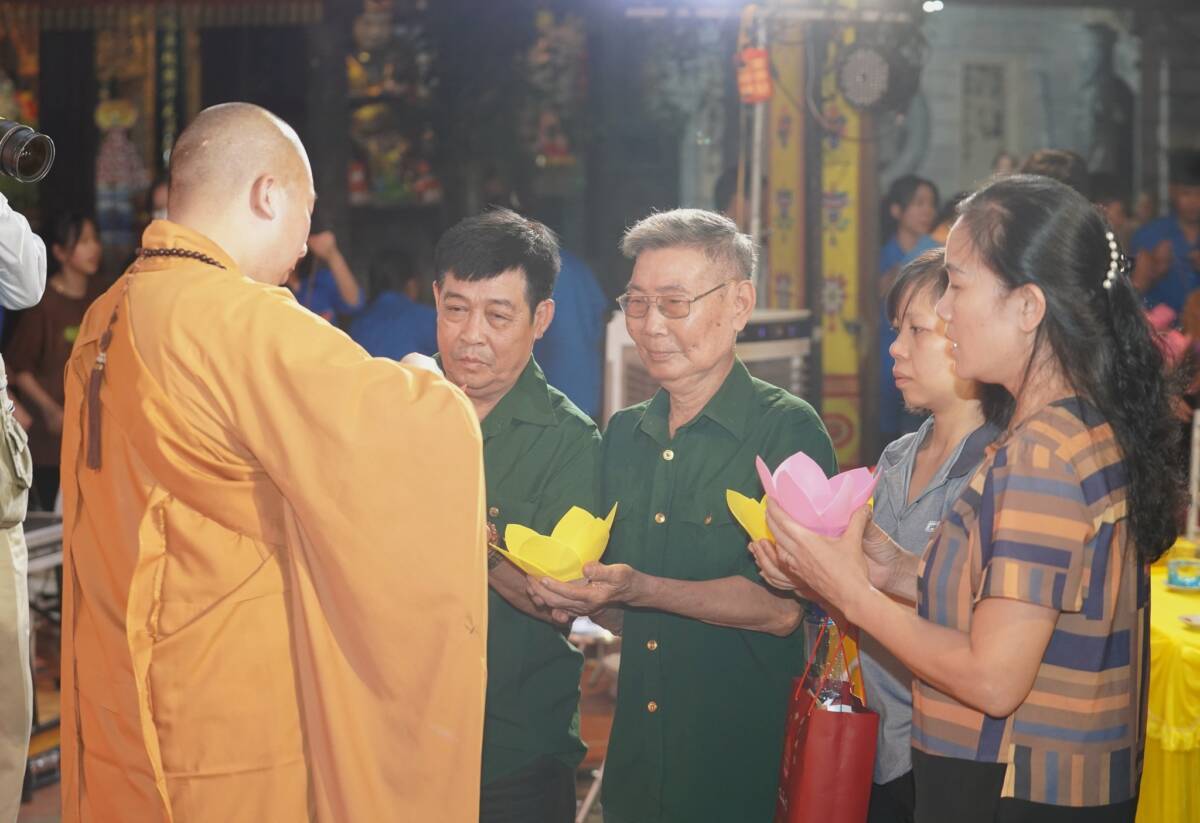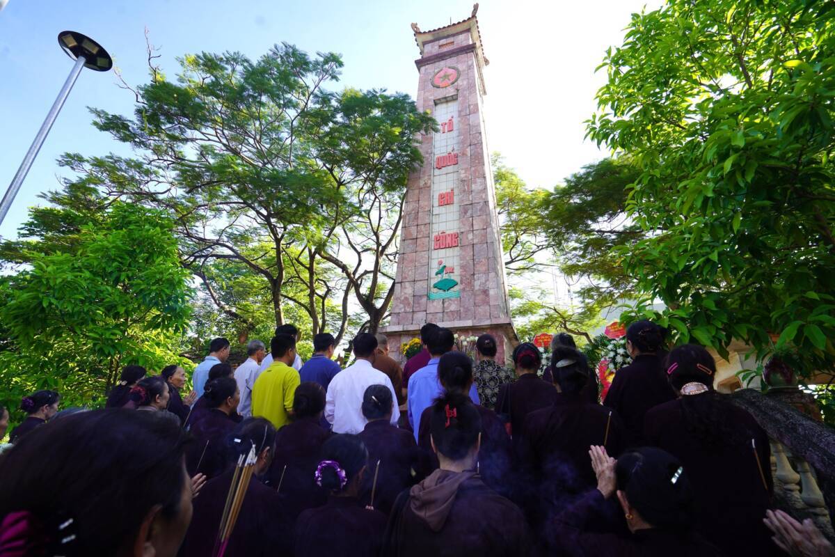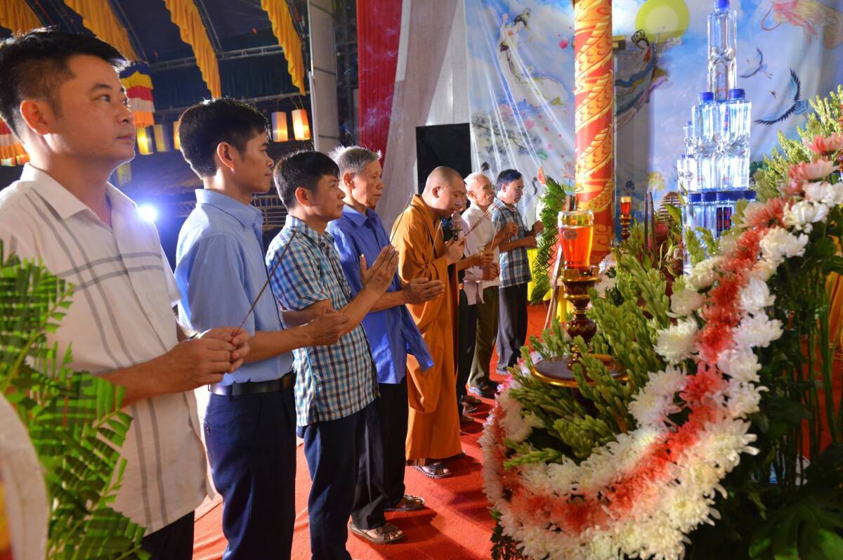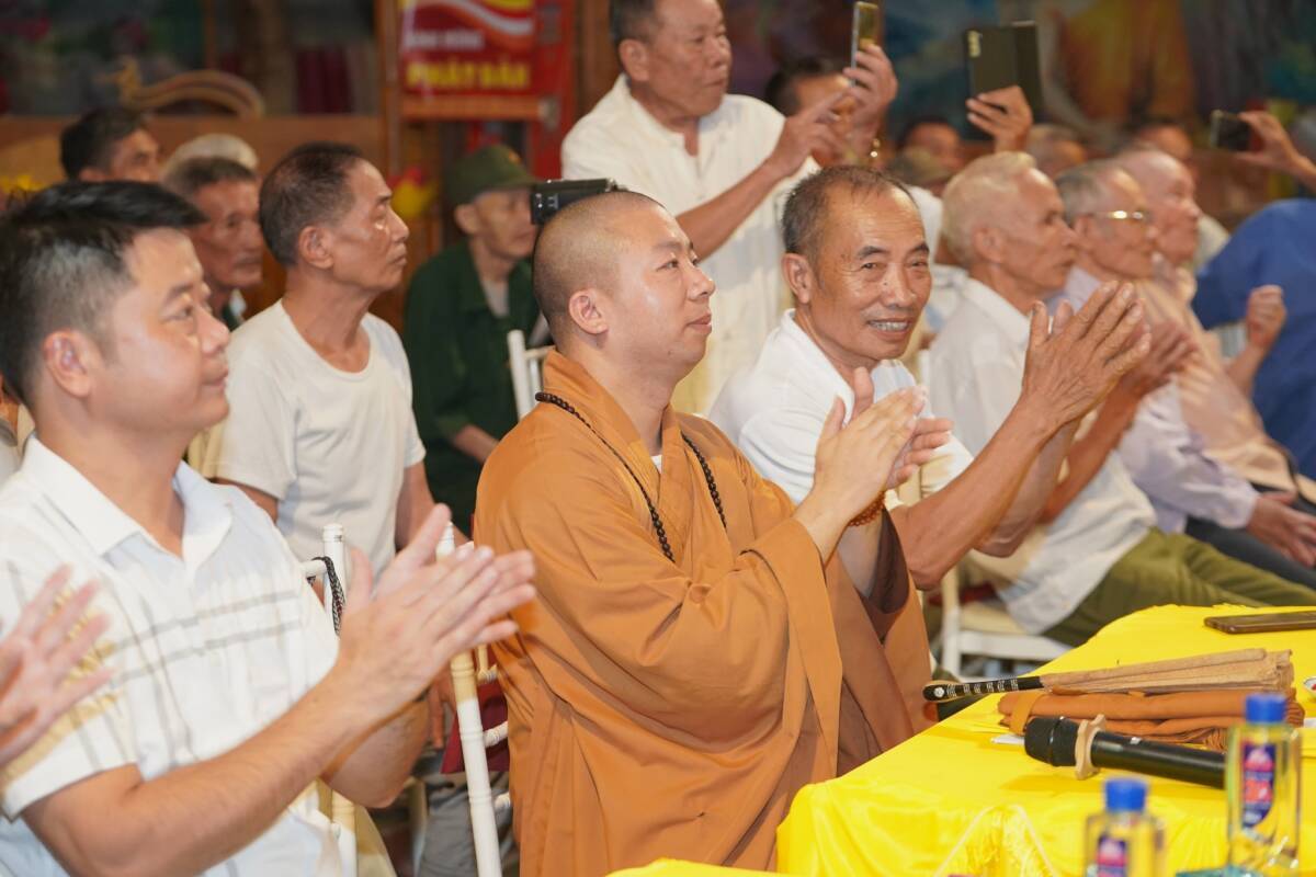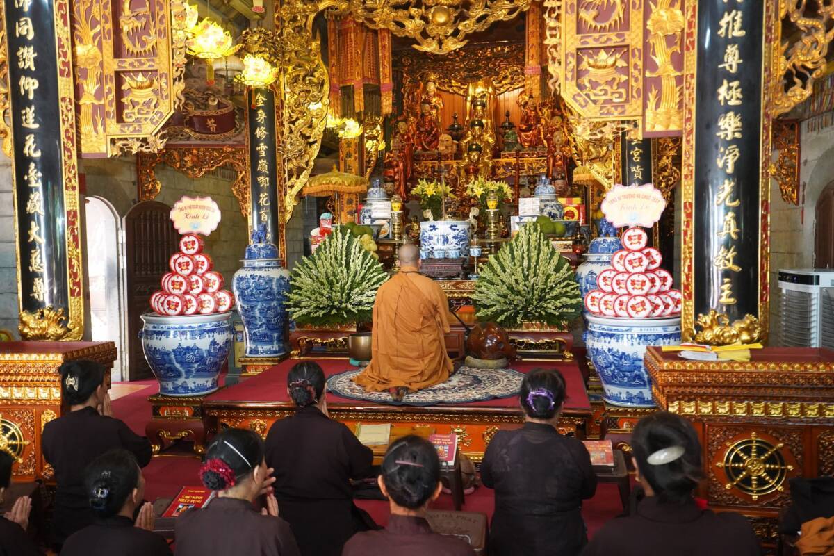 Trong không gian tôn nghiêm, linh thiêng chùa Long Đẩu, đúng 14h, tiếng chuông, tiếng mõ cầu siêu vang vọng mở đầu cho buổi lễ. Chủ lễ – Đại đức Thích Đạo Khuê là người dẫn nhịp. Đạo tràng thành kính, trang nghiêm, một lòng hướng về đức Phật từ bi. Lời kinh tiếng kệ tâm thành dẫn lối cho anh linh các anh hùng liệt sĩ, đồng bào tử nạn về với Long Đẩu tự lễ Phật, lạy Phật, trở về nước Phật. Hương thơm của nhang, ánh sáng của đèn, nến, sắc rực rỡ của hoa hòa cùng niềm thành kính của đạo tràng khiến buổi tụng niệm càng trở nên trang trọng và ý nghĩa.
