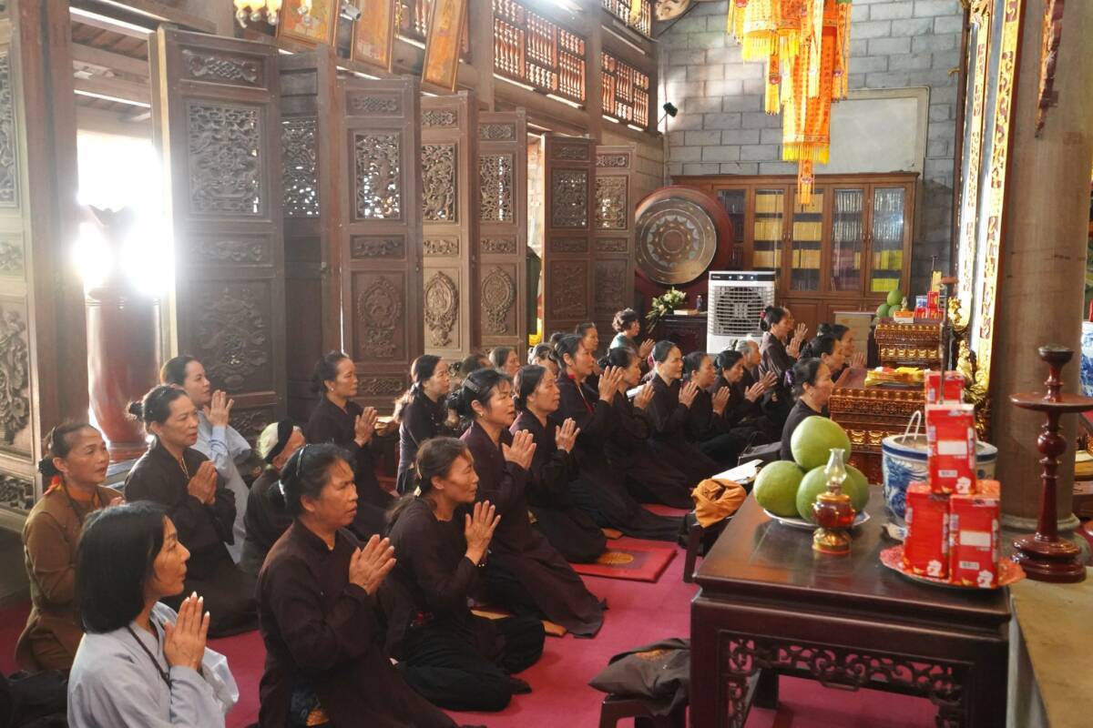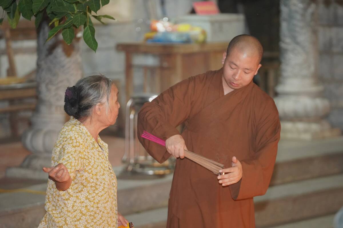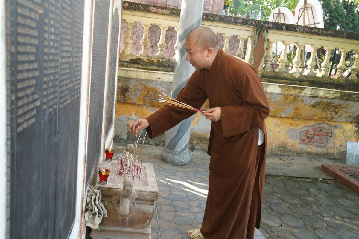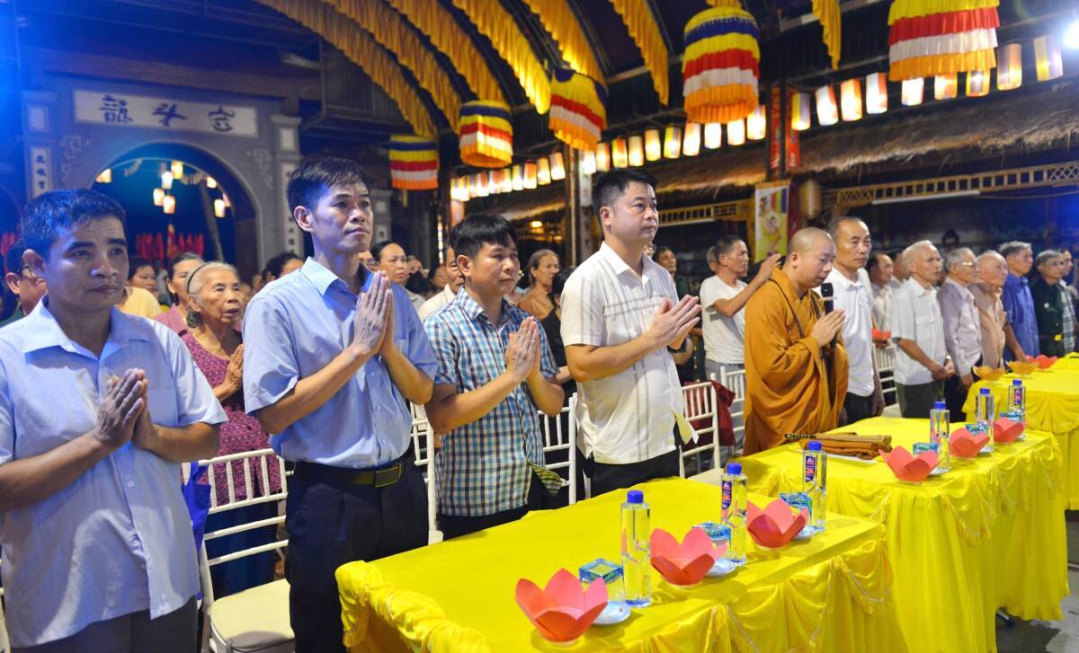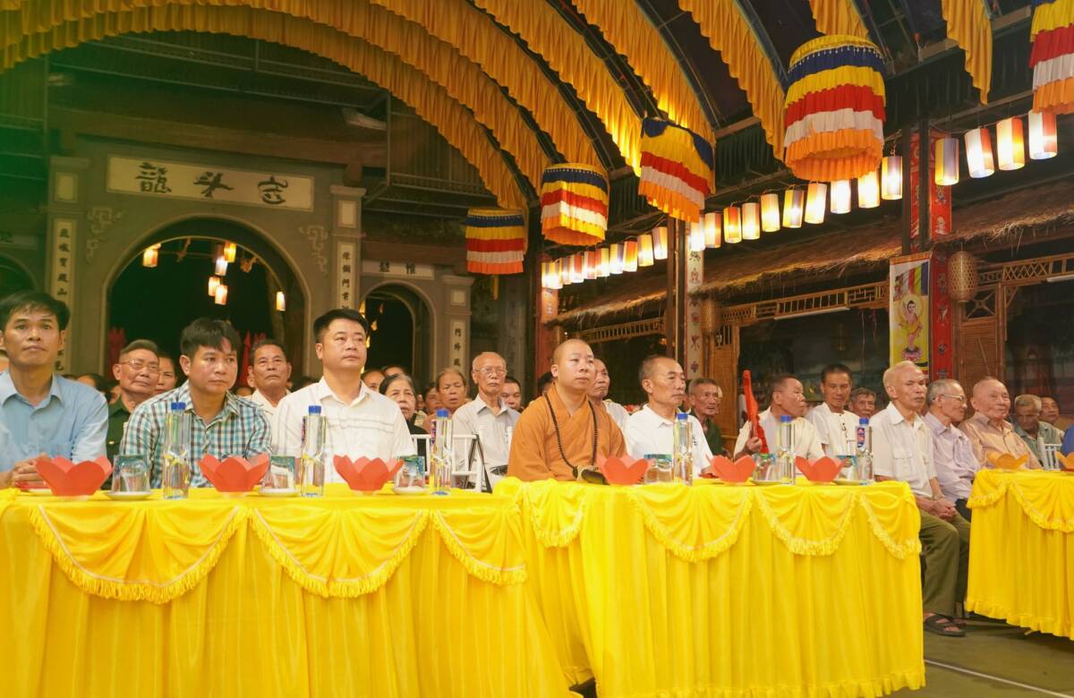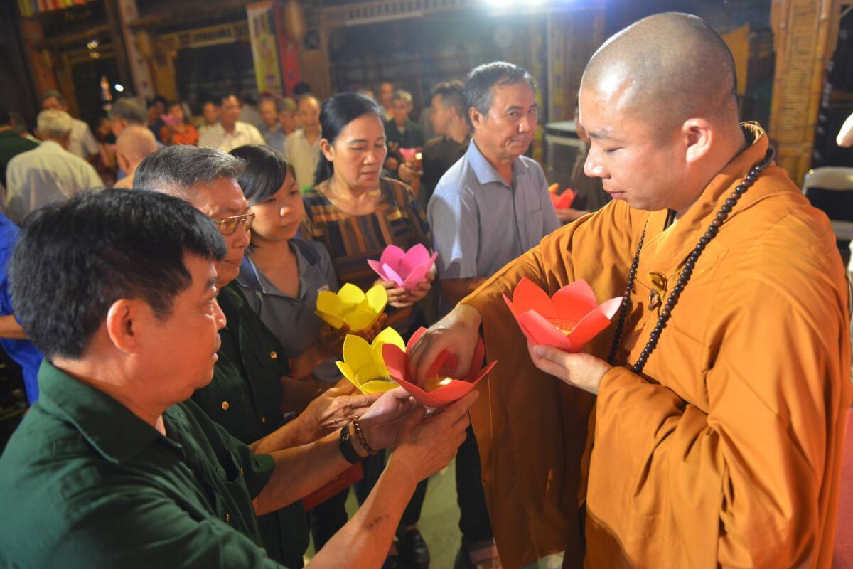Trong không gian tôn nghiêm, linh thiêng chùa Long Đẩu, đúng 14h, tiếng chuông, tiếng mõ cầu siêu vang vọng mở đầu cho buổi lễ. Chủ lễ – Đại đức Thích Đạo Khuê là người dẫn nhịp. Đạo tràng thành kính, trang nghiêm, một lòng hướng về đức Phật từ bi. Lời kinh tiếng kệ tâm thành dẫn lối cho anh linh các anh hùng liệt sĩ, đồng bào tử nạn về với Long Đẩu tự lễ Phật, lạy Phật, trở về nước Phật. Hương thơm của nhang, ánh sáng của đèn, nến, sắc rực rỡ của hoa hòa cùng niềm thành kính của đạo tràng khiến buổi tụng niệm càng trở nên trang trọng và ý nghĩa.