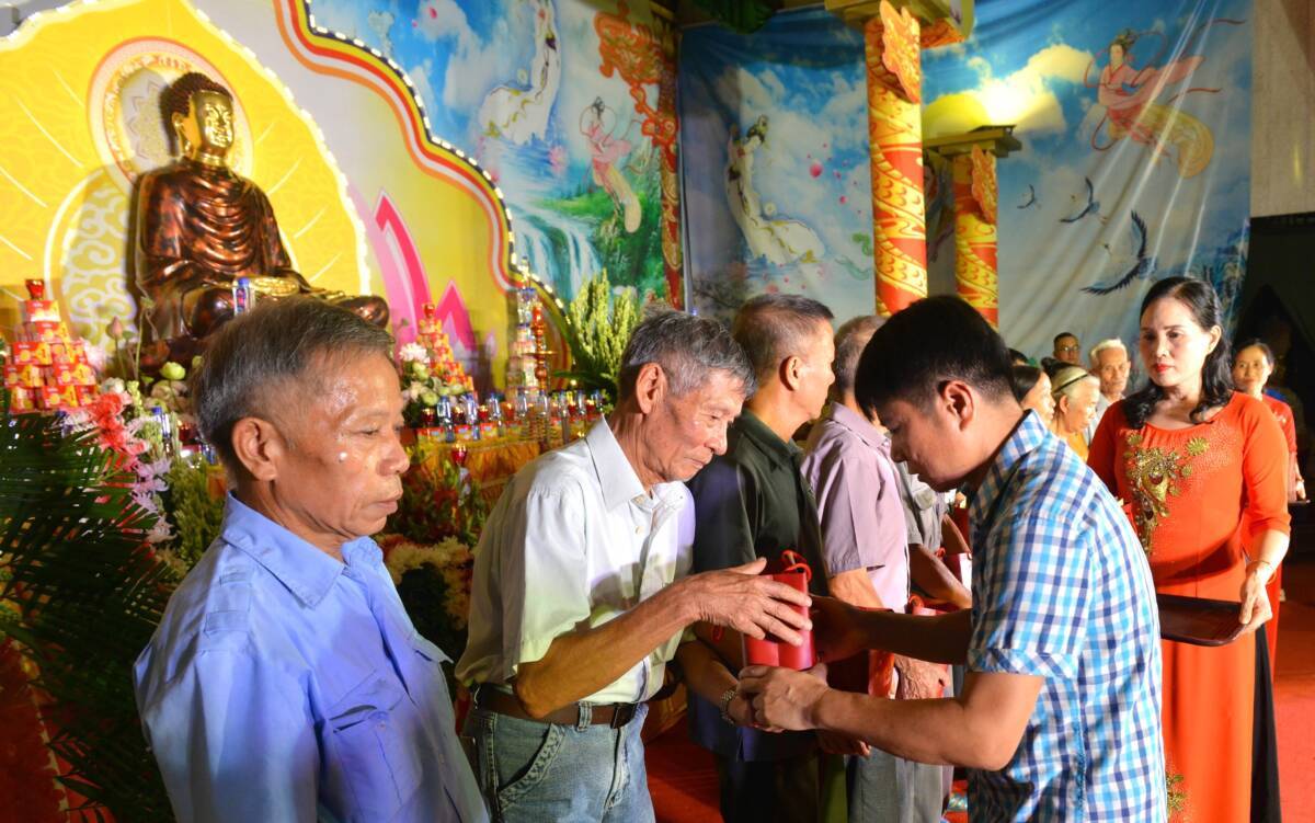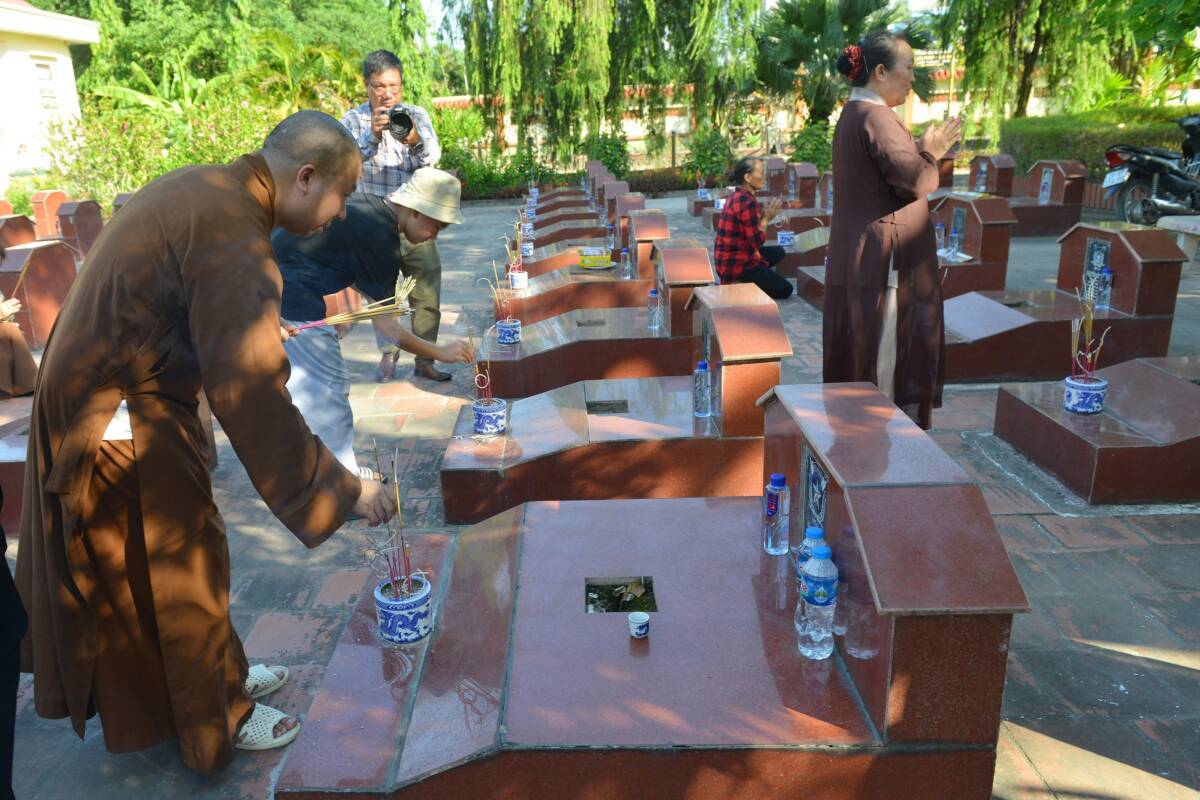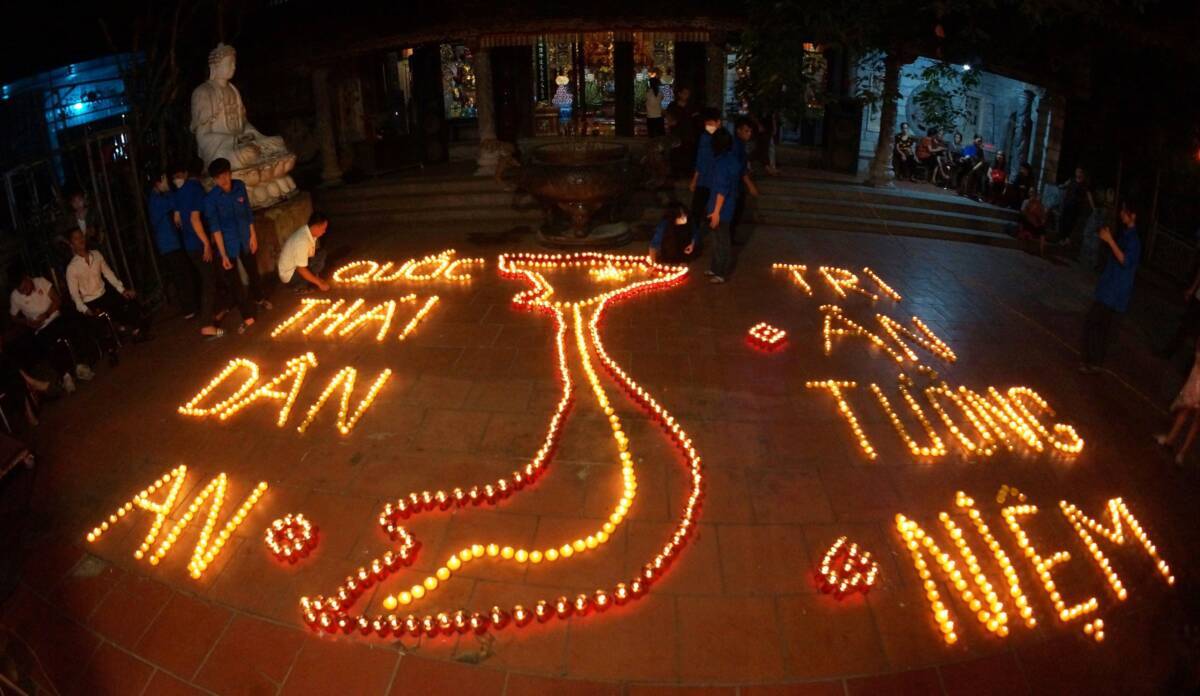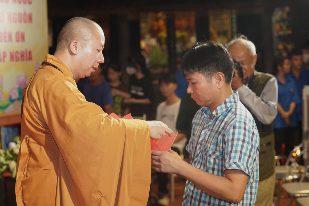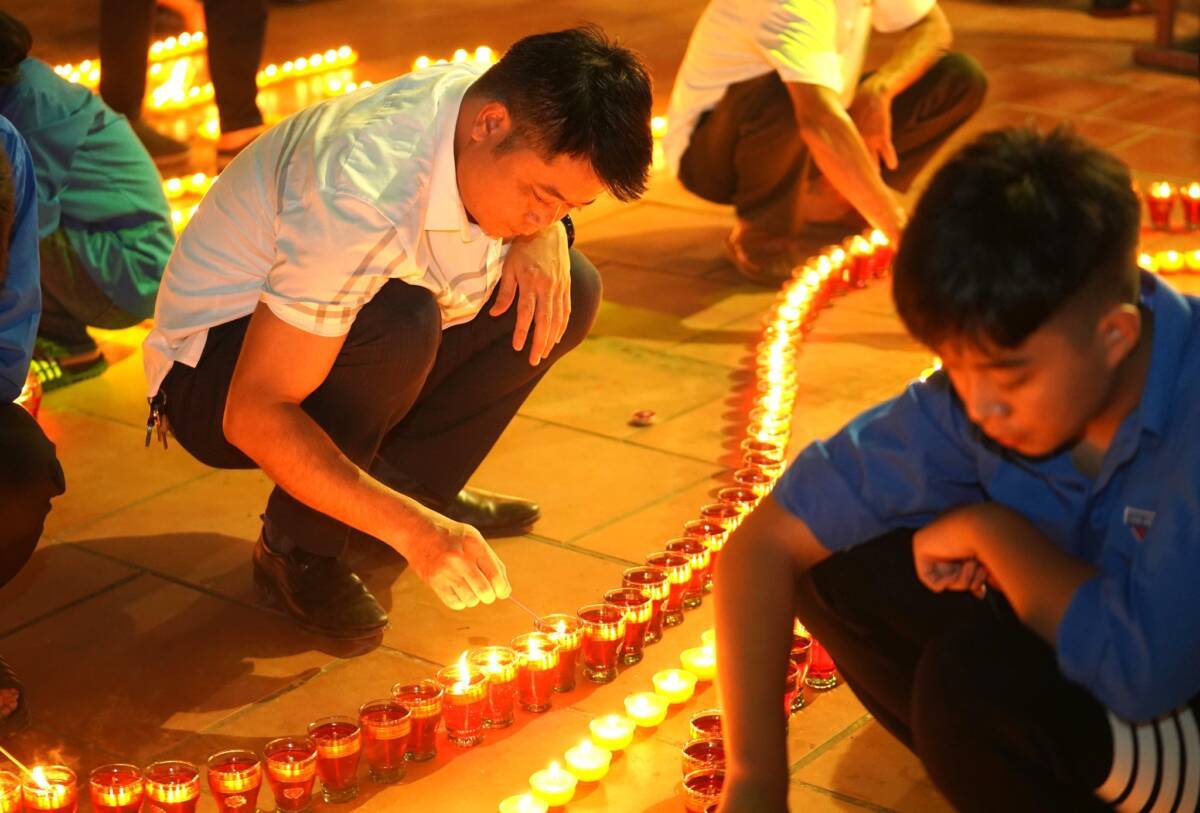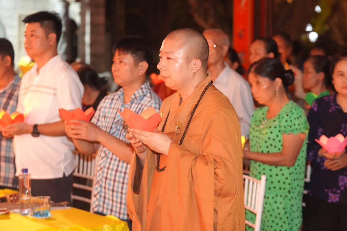 Trong không gian tôn nghiêm, linh thiêng chùa Long Đẩu, đúng 14h, tiếng chuông, tiếng mõ cầu siêu vang vọng mở đầu cho buổi lễ. Chủ lễ – Đại đức Thích Đạo Khuê là người dẫn nhịp. Đạo tràng thành kính, trang nghiêm, một lòng hướng về đức Phật từ bi. Lời kinh tiếng kệ tâm thành dẫn lối cho anh linh các anh hùng liệt sĩ, đồng bào tử nạn về với Long Đẩu tự lễ Phật, lạy Phật, trở về nước Phật. Hương thơm của nhang, ánh sáng của đèn, nến, sắc rực rỡ của hoa hòa cùng niềm thành kính của đạo tràng khiến buổi tụng niệm càng trở nên trang trọng và ý nghĩa.
