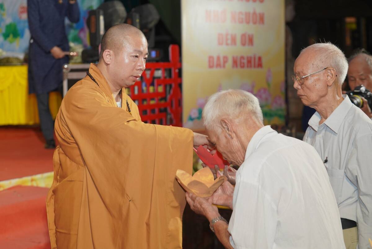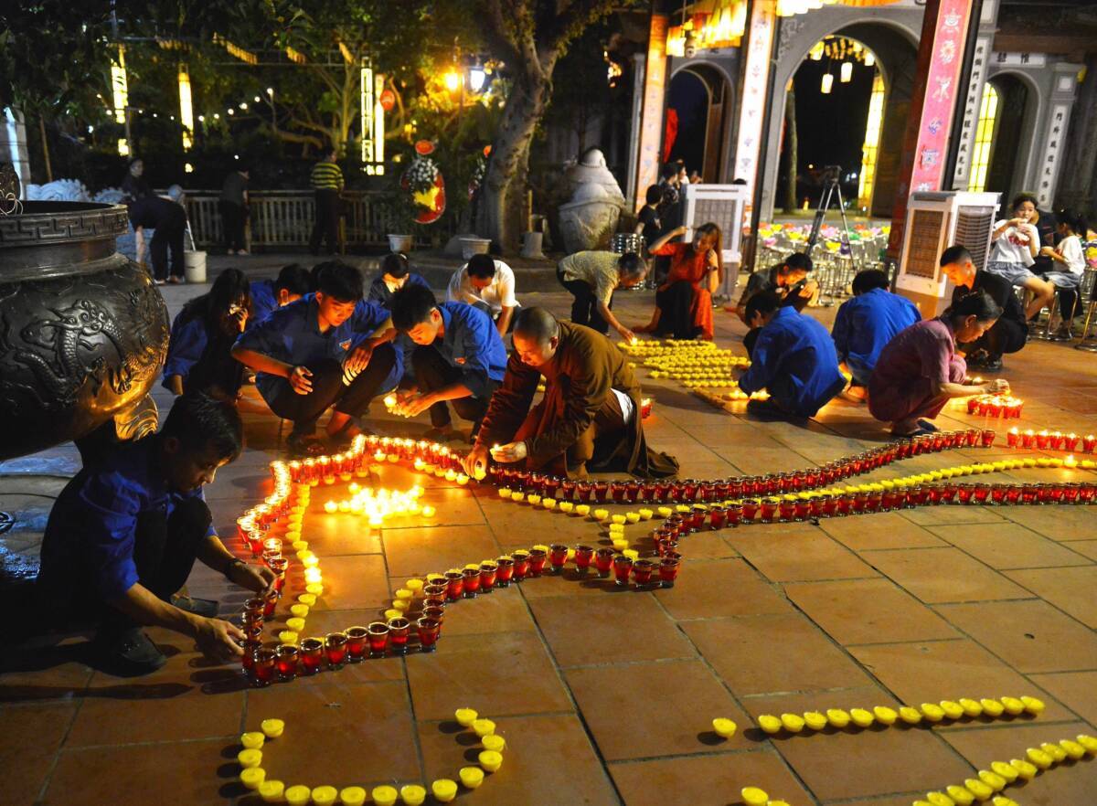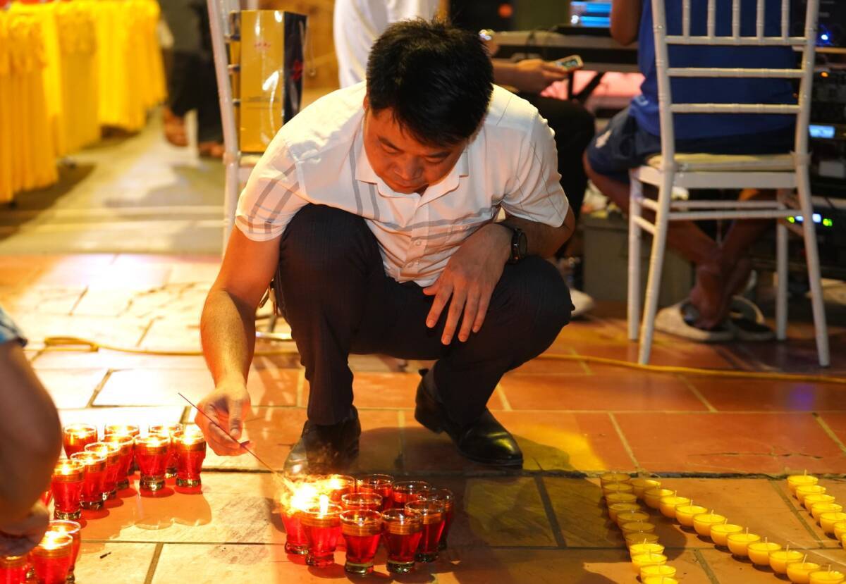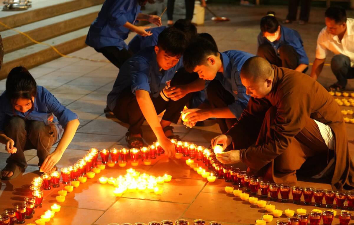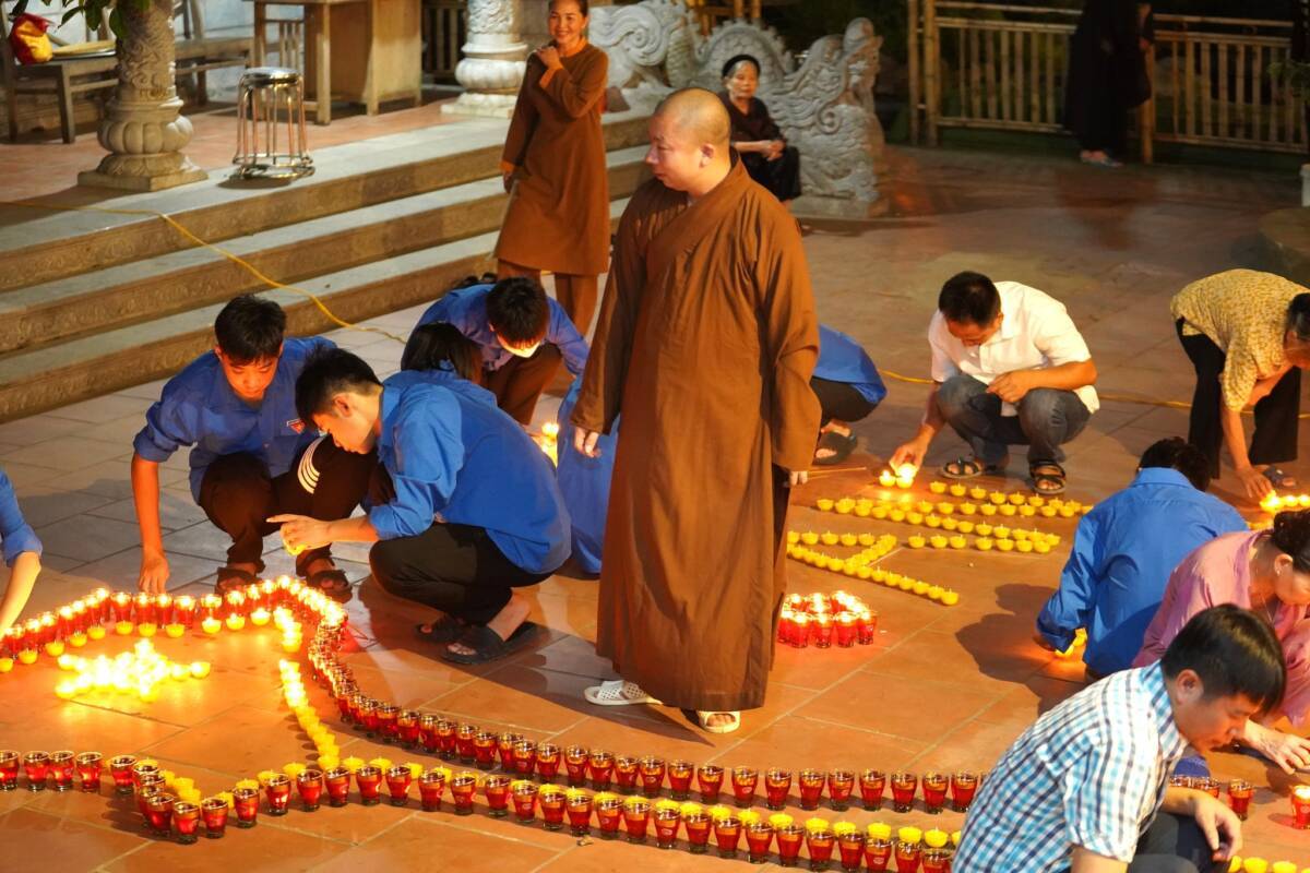 Trong không gian tôn nghiêm, linh thiêng chùa Long Đẩu, đúng 14h, tiếng chuông, tiếng mõ cầu siêu vang vọng mở đầu cho buổi lễ. Chủ lễ – Đại đức Thích Đạo Khuê là người dẫn nhịp. Đạo tràng thành kính, trang nghiêm, một lòng hướng về đức Phật từ bi. Lời kinh tiếng kệ tâm thành dẫn lối cho anh linh các anh hùng liệt sĩ, đồng bào tử nạn về với Long Đẩu tự lễ Phật, lạy Phật, trở về nước Phật. Hương thơm của nhang, ánh sáng của đèn, nến, sắc rực rỡ của hoa hòa cùng niềm thành kính của đạo tràng khiến buổi tụng niệm càng trở nên trang trọng và ý nghĩa.