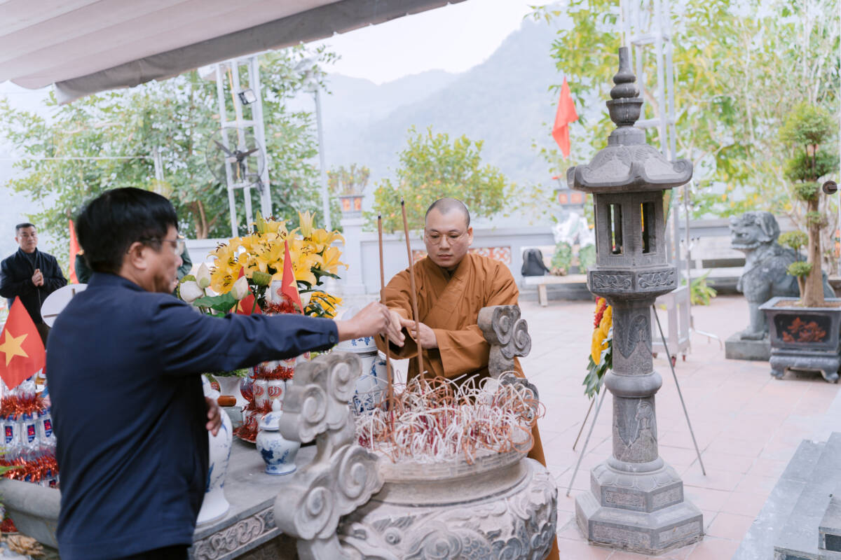 Trên đường di chuyển lên tới địa điểm phát quà, đoàn đã tổ chức lễ dâng hương tưởng niệm hương linh Bác Hồ, Đại tướng Võ Nguyên Giáp và các anh hùng liệt sỹ tại Đền thờ AHLS- MTVX trên điểm cao 468.