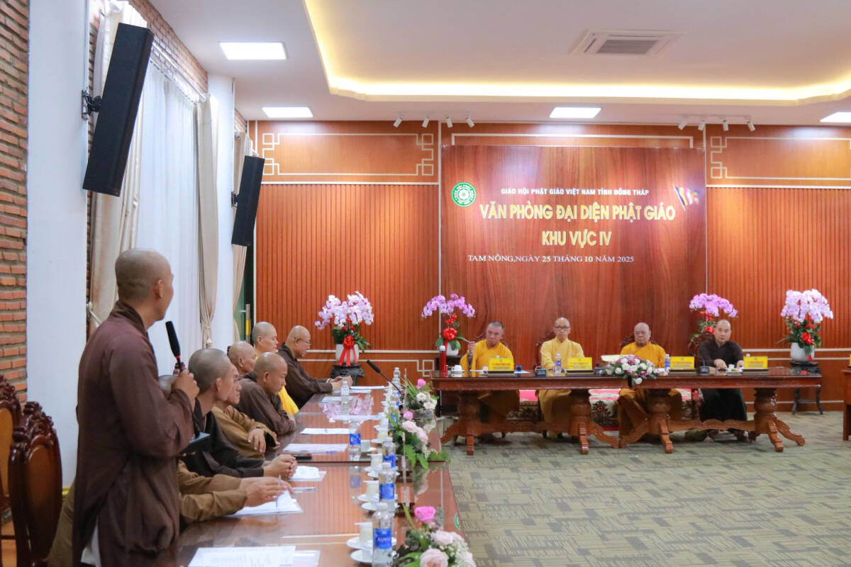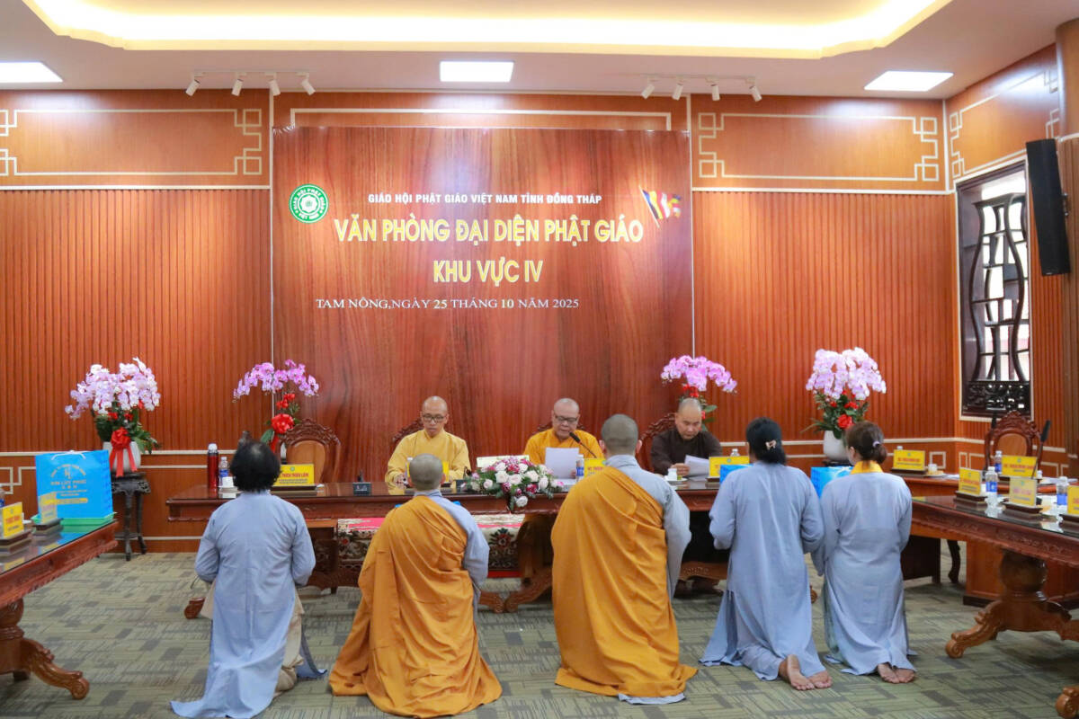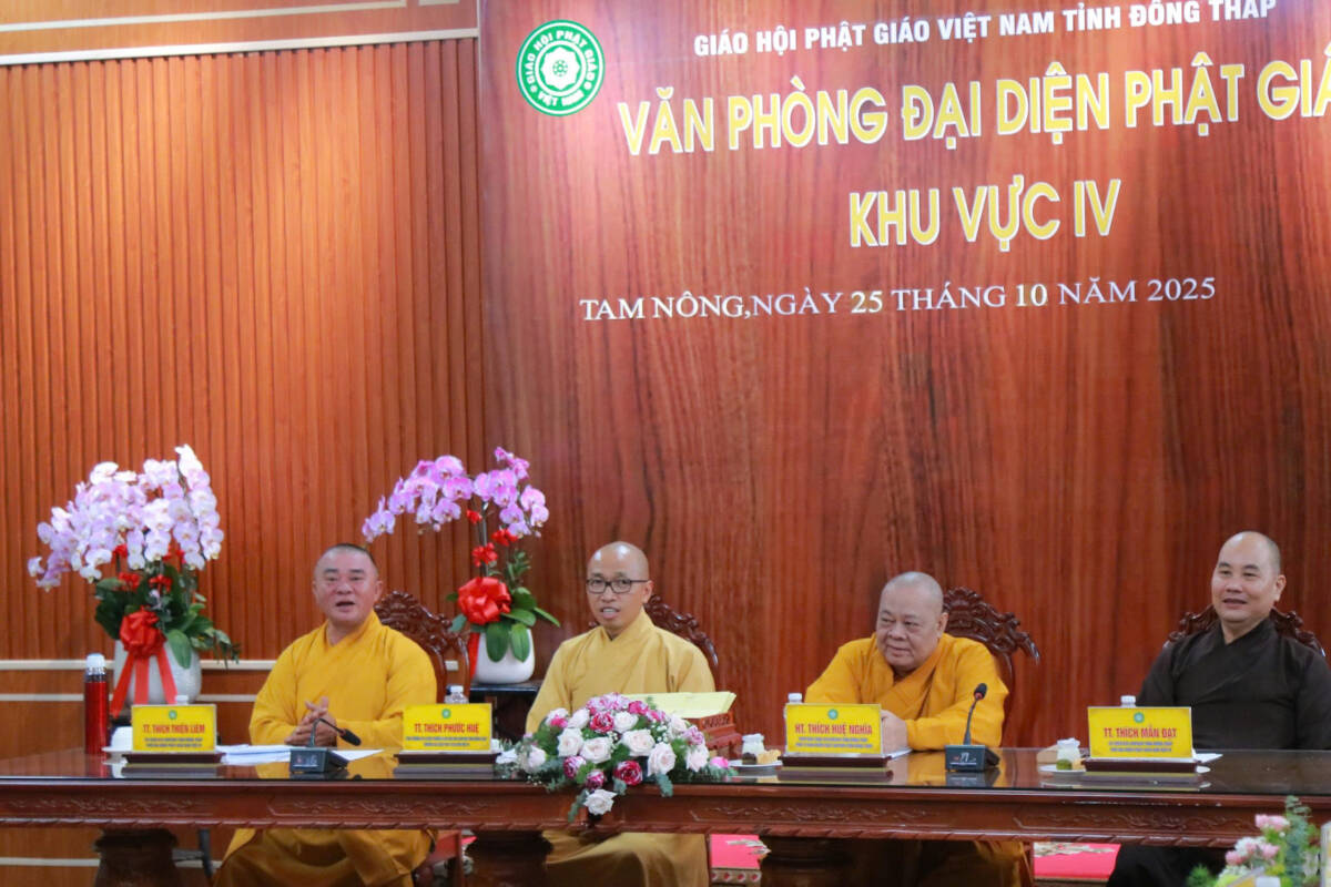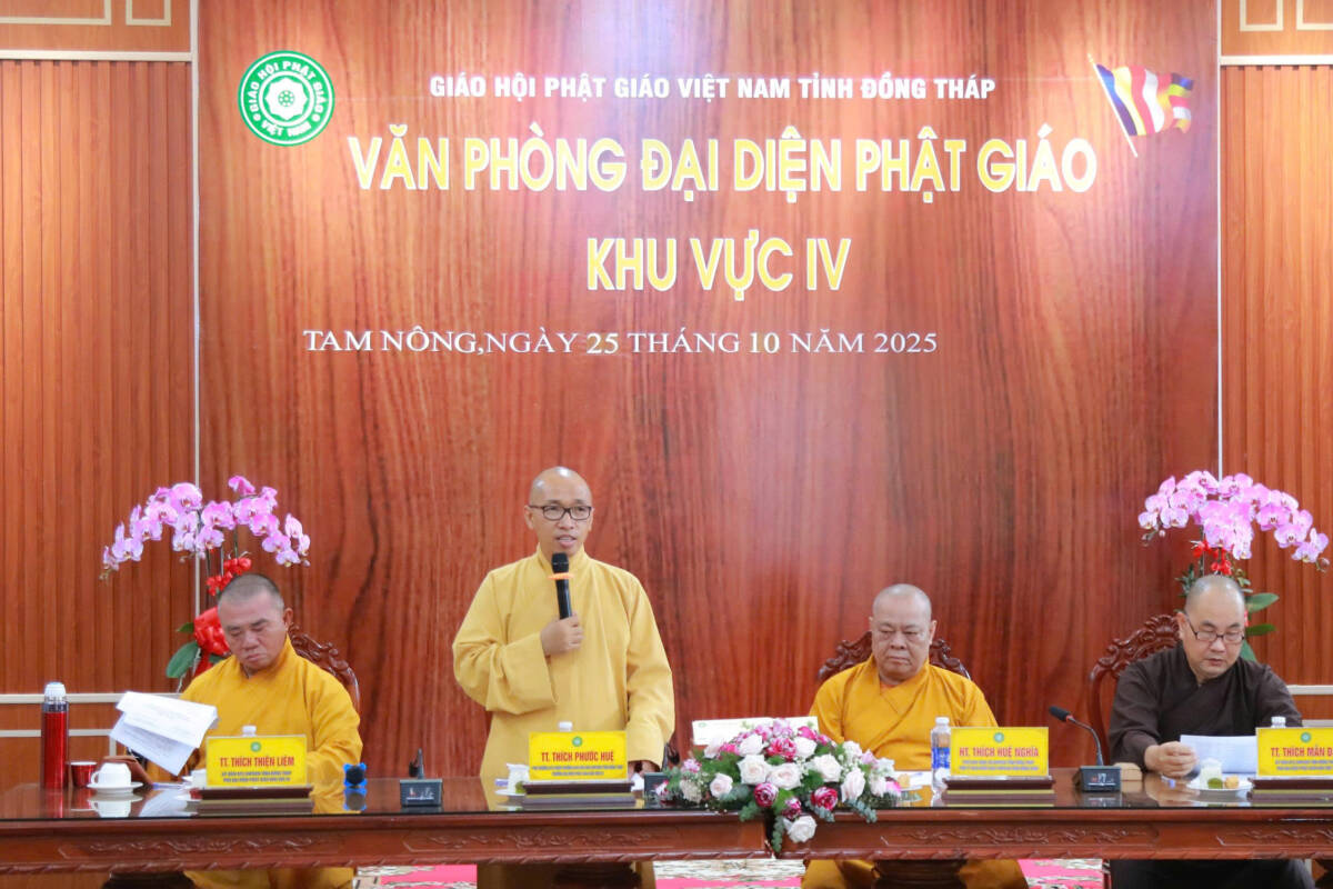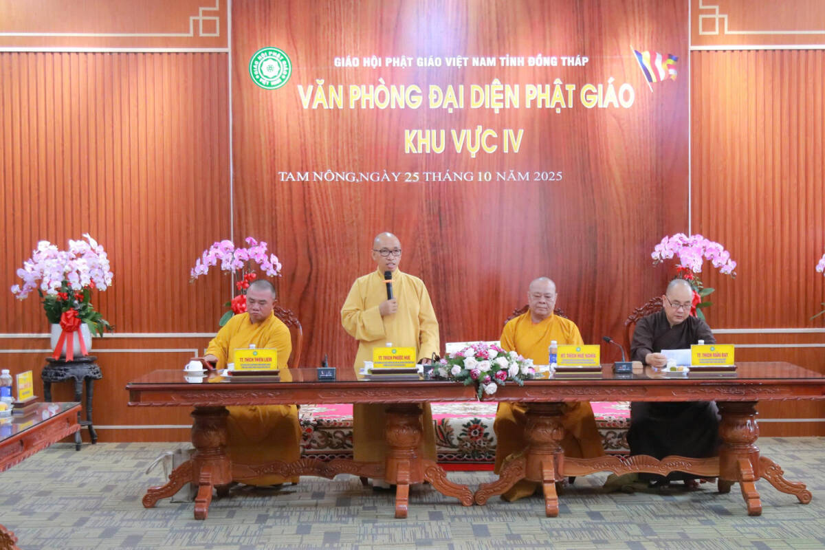 Phiên họp được chủ trì bởi TT. Thích Phước Huệ – Phó Trưởng Ban Trị sự GHPGVN tỉnh Đồng Tháp, Trưởng đại diện Phật giáo khu vực IV; cùng sự tham dự của HT. Thích Huệ Nghĩa – Phó Ban Tăng sự, Phó Thường trực Ban Kiểm soát GHPGVN tỉnh Đồng Tháp; TT. Thích Thiện Liêm, TT. Thích Mẫn Đạt – đồng Phó đại diện Phật giáo khu vực IV, cùng chư Tôn đức đại diện, chư Tôn đức trụ trì các cơ sở tự viện trong khu vực.