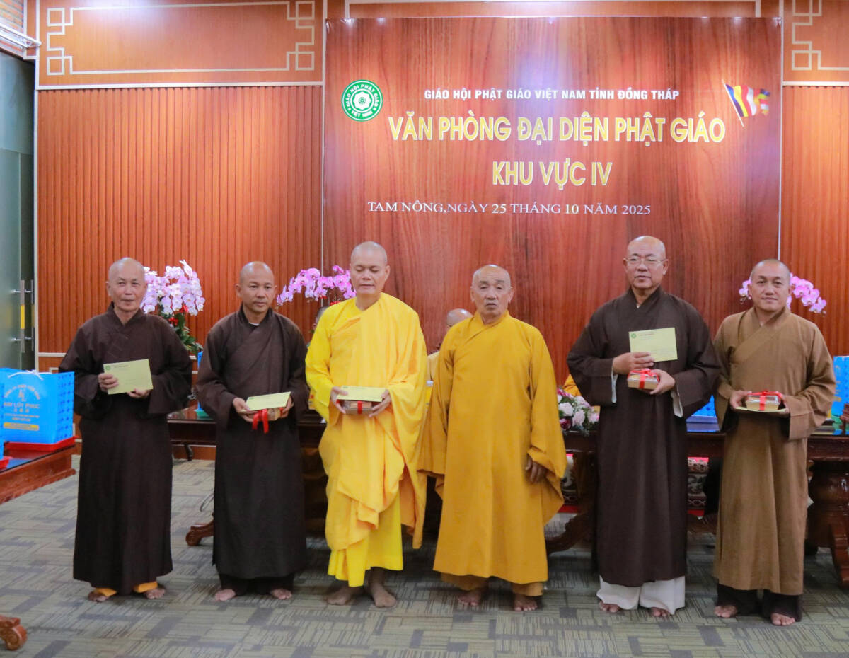 Báo cáo tài chính tại phiên họp, ĐĐ. Thích Minh Đức cho biết, chư Tăng Ni, Phật tử khu vực IV đã hưởng ứng lời kêu gọi của Ban Trị sự tỉnh, quyên góp 100 triệu đồng để ủng hộ công tác cứu trợ bà con. Cũng trong phiên họp, chư Tôn đức định hướng các hoạt động Phật sự sắp tới của tháng 10 của đại diện Phật giáo khu vực IV, trong đó sẽ tiến hành lễ bổ nhiệm trụ trì đến các tự viện chưa có trụ trì như chùa Phước Linh, chùa Đông An, Thiền viện Trúc Lâm Hồng Ngự và Tịnh thất Bạch Liên – đánh dấu sự phát triển vững mạnh của Tăng đoàn trong khu vực.