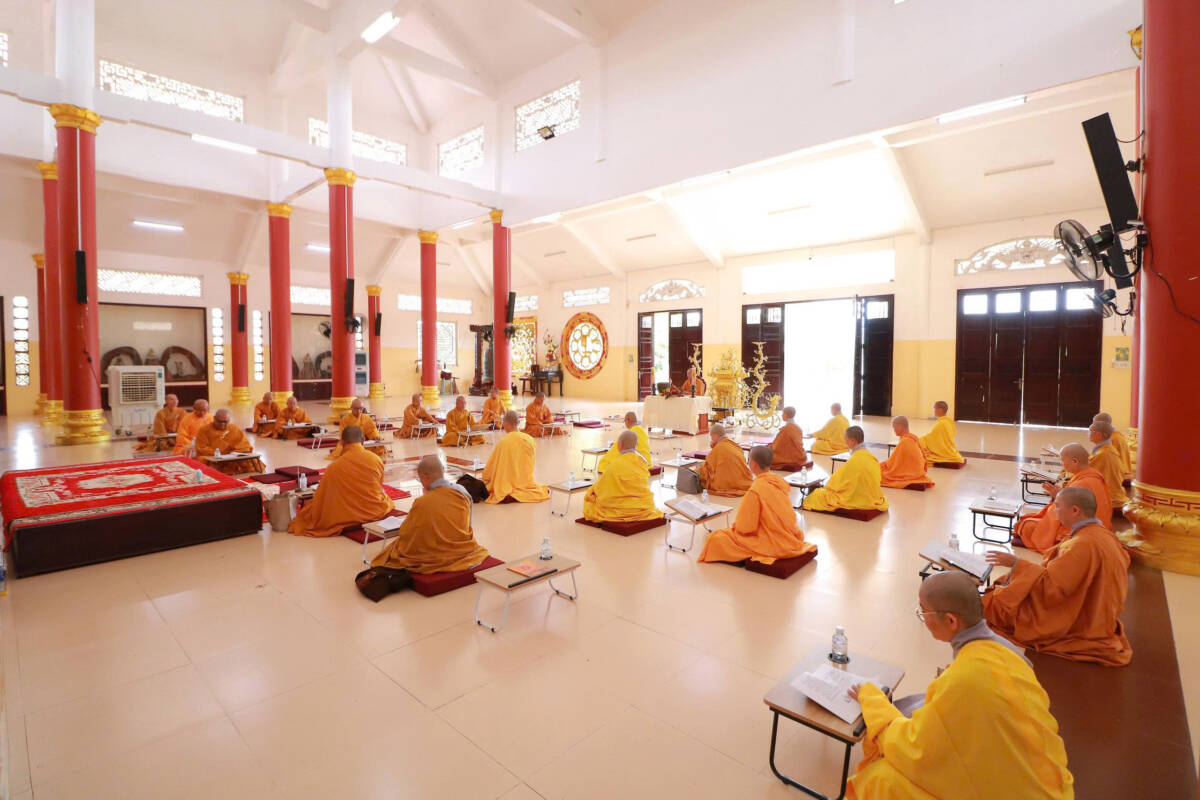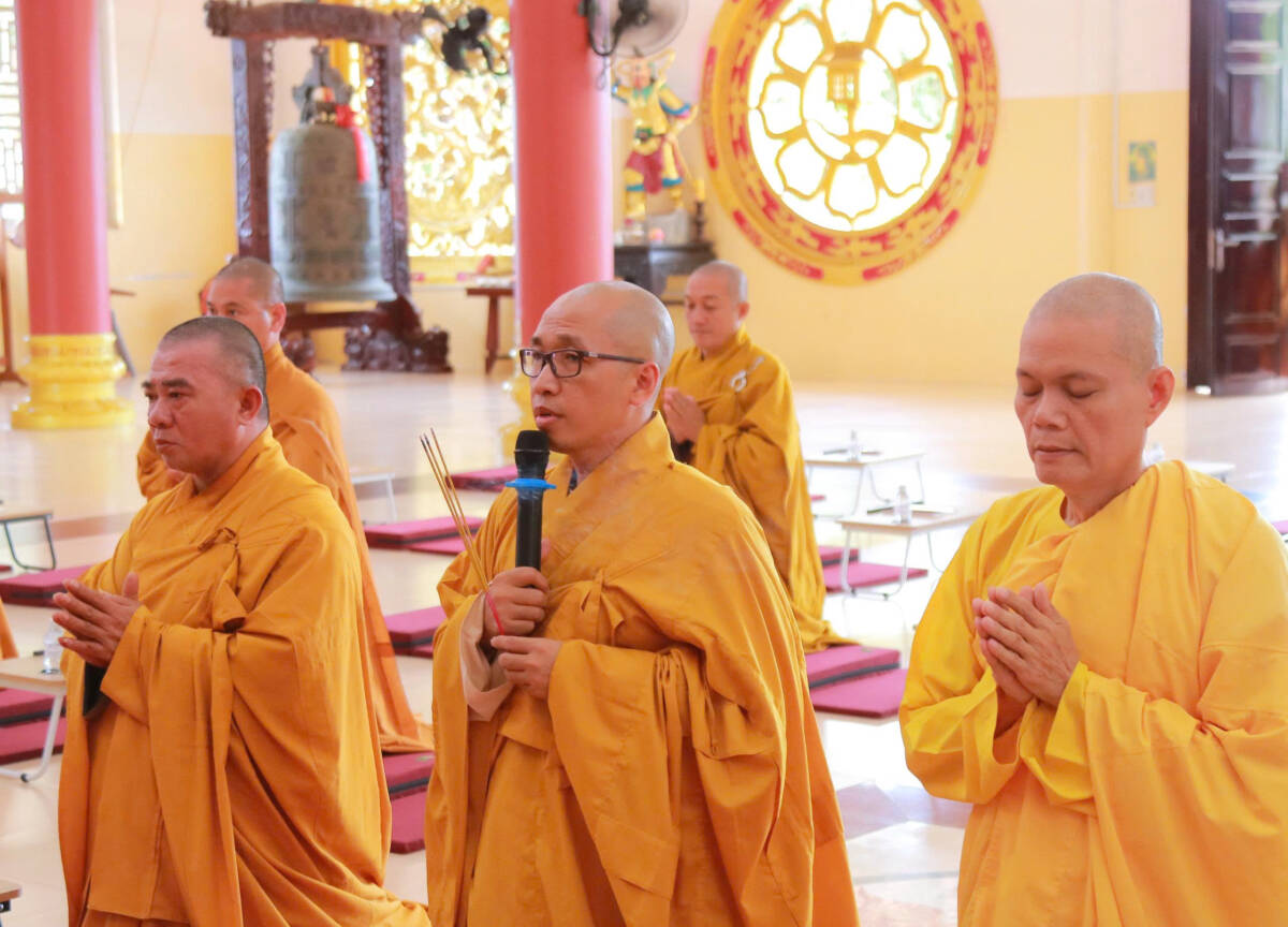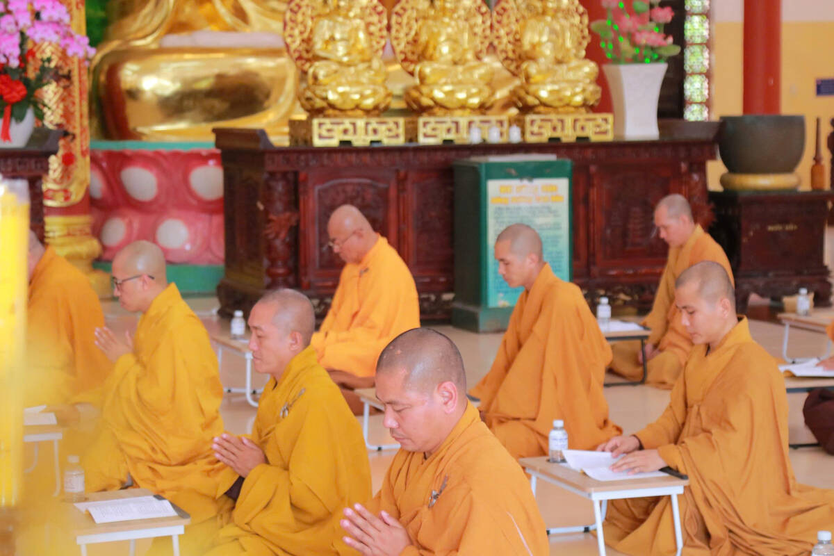 Trước khi triển khai các kế hoạch tháng 9 ÂL, HT. Thích Huệ Nghĩa đã chủ trì khóa tụng Giới nhân ngày họp định kỳ, nhằm sách tấn Tăng Ni giữ gìn giới luật, tinh tấn trong đời sống tu học.
