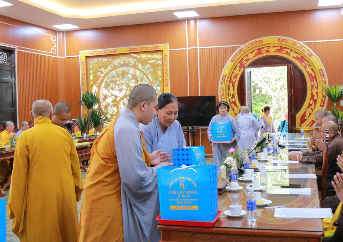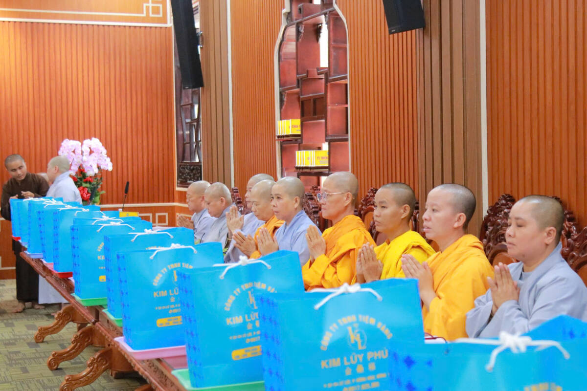 Kết thúc phiên họp, trong không khí trang nghiêm và đầy hoan hỷ, chư Tăng Ni, Phật tử, gia đình Phật tử Kim Lũy Phúc đã phát tâm cúng dường tịnh tài, tứ sự, góp phần tăng trưởng đạo tâm và công đức lành đến đại chúng ở vùng bị thiên tai.