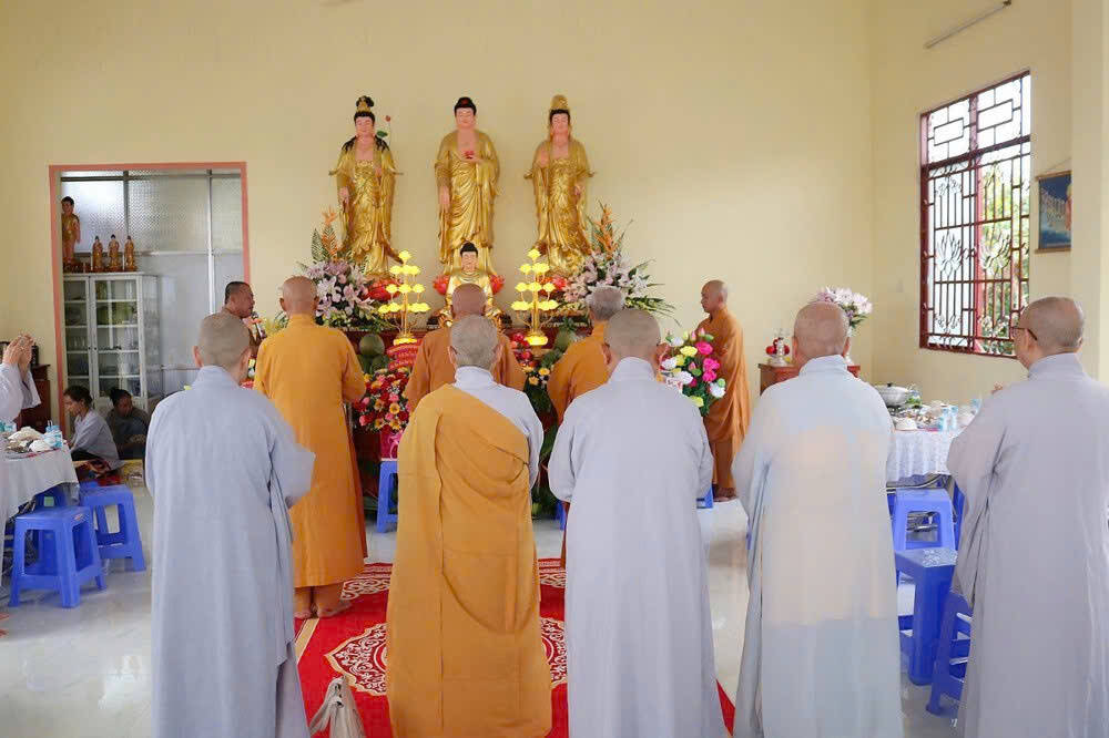 Kết thúc lễ hành chánh, chư Tôn đức đã thực hiện nghi thức Thượng bảng Điểm sinh hoạt Tôn giáo tập trung Đạo tràng Quang Minh. Sau đó, tại chánh điện quý Ngài đã đã niêm hương bạch Phật, sái tịnh, an vị Tôn tượng Tam Thế Phật.