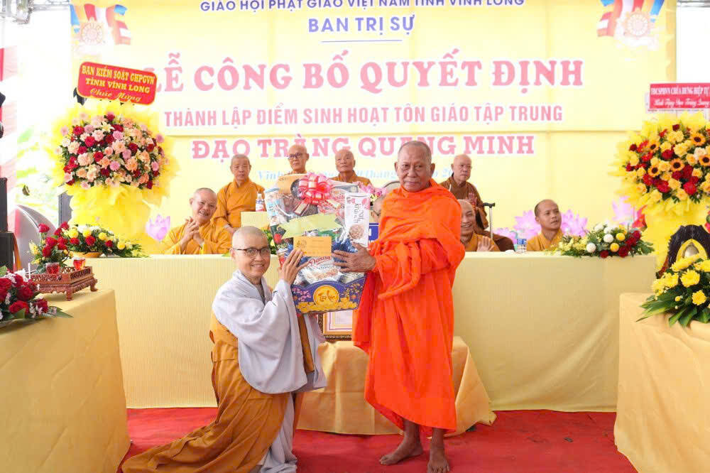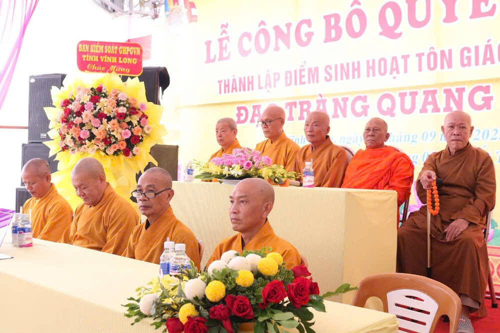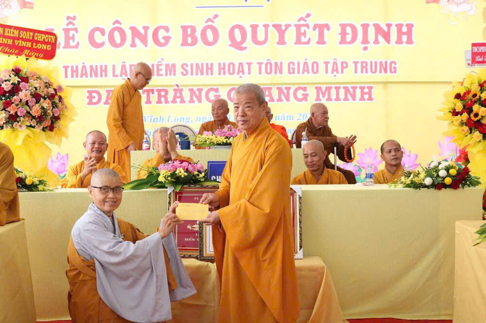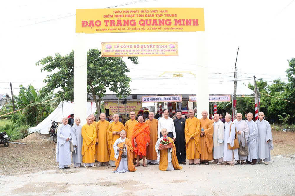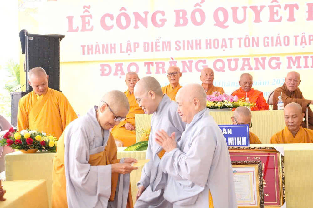 Tại buổi lễ,ĐĐ.Thích Minh Hải, Phó Chánh Văn phòng BTS PG, đã công bố Quyết định số 304/QĐ-BTS ngày 27/6/2025 về việc thành lập Điểm sinh hoạt Tôn giáo tập trung Đạo tràng Quang Minh (ấp Giồng Dài, xã Hiệp Mỹ), phân công SC.Thích Nữ Trung Vân, thế danh Mai Thị Mỹ Dung, làm đại diện quản lý, hướng dẫn Phật tử tu tập.