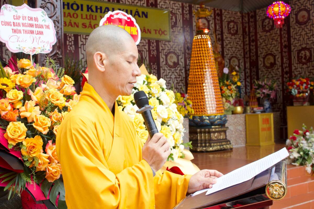 Tiếp đó, ĐĐ. Thích Quảng Hỷ đại diện BTC đã lên phát biểu khai mạc Lễ hội xuân năm Giáp Thìn. Lễ hội truyền thống chùa Thanh Lanh là dịp để bà con nhân dân bày tỏ niềm thành kính, tôn vinh, tưởng nhớ công đức đối với chư Phật, lịch đại Tổ sư, các bậc tiền bối, các vị thánh thần đã có công xây dựng và bảo vệ làng, quê hương, đất nước. Đây chính là đạo đức truyền thống uống nước nhớ nguồn, ăn quả nhớ người trồng cây, đền ơn đáp nghĩa với người có công đức với cộng đồng, dân tộc. Đồng thời giúp con người nhớ về nguồn cội, sống hướng thiện nhằm tạo dựng một cuộc sống an vui, hạnh phúc. Lễ hội chùa Thanh Lanh là hoạt động của bà con nhân dân Phật tử địa phương trong đời sống tâm linh, là văn hóa tinh thần của cộng đồng và cũng là hình thức để duy trì bản sắc văn hóa truyền thống dân tộc, góp phần bồi đắp thêm cho con người lòng nhân ái, biết yêu thương nhau, trọng hiếu nghĩa, phát huy truyền thống lá lành đùm lá rách, giúp đỡ nhau vượt qua khó khăn. Đây cũng chính là giá trị đạo đức văn hóa tôn giáo, góp phần duy trì đạo đức xã hội, hoàn thiện nhân cách cá nhân, hướng con người đến giá trị của Chân – Thiện – Mỹ.