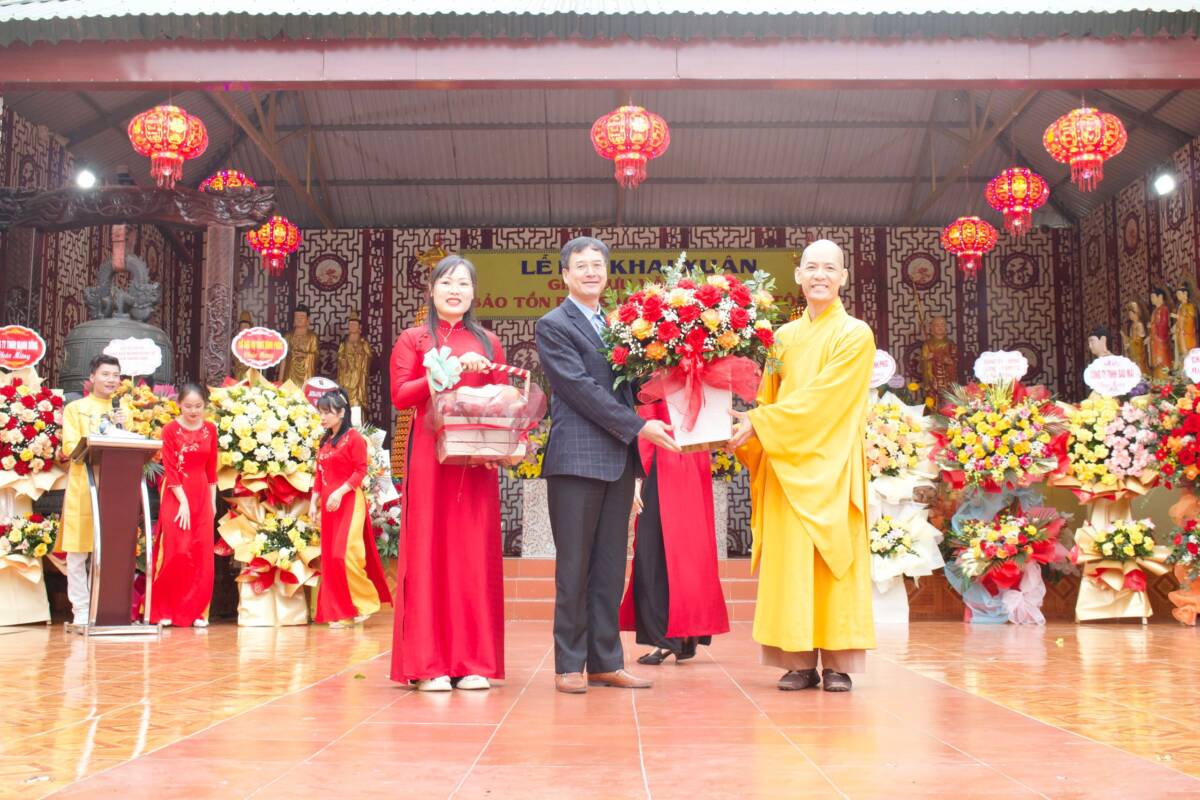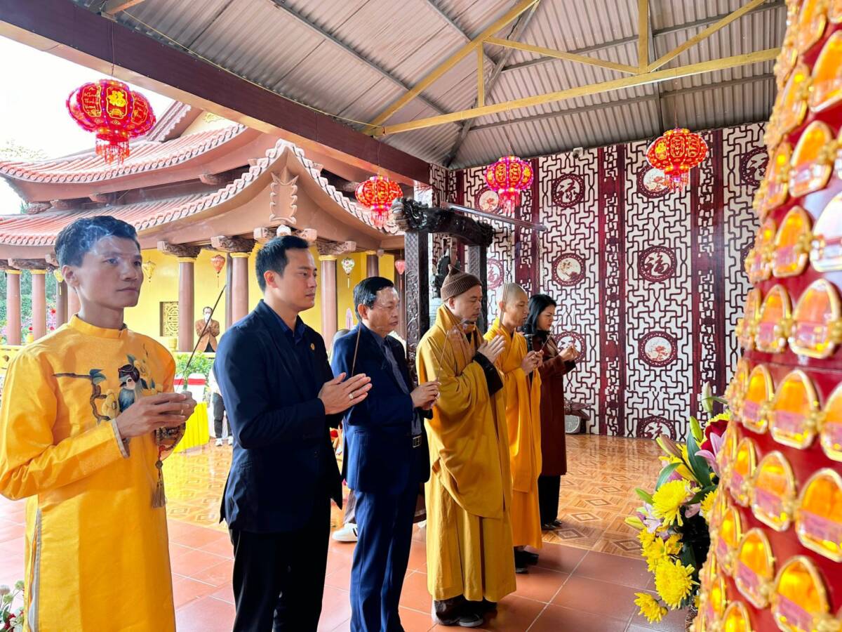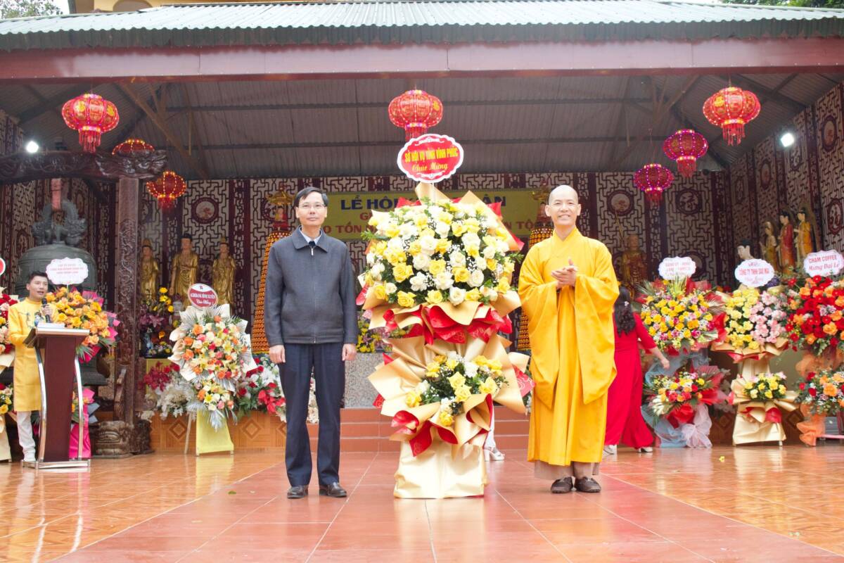 Về phía chính quyền có sự hiện diện của: ông Lại Hữu Tuyển- Tỉnh Uỷ viên, Phó trưởng Ban phụ trách Ban Dân Vận Tỉnh uỷ; ông Nguyễn Tuấn Anh- Phó Giám đốc Sở nội vụ tỉnh; ông Trần Duy Hưng- Phó Chủ tịch UBND xã Trung Mỹ; cùng lãnh đạo ban ngành các cấp, nhân dân Phật tử thập phương cùng về tặng hoa và chúc mừng lễ hội.